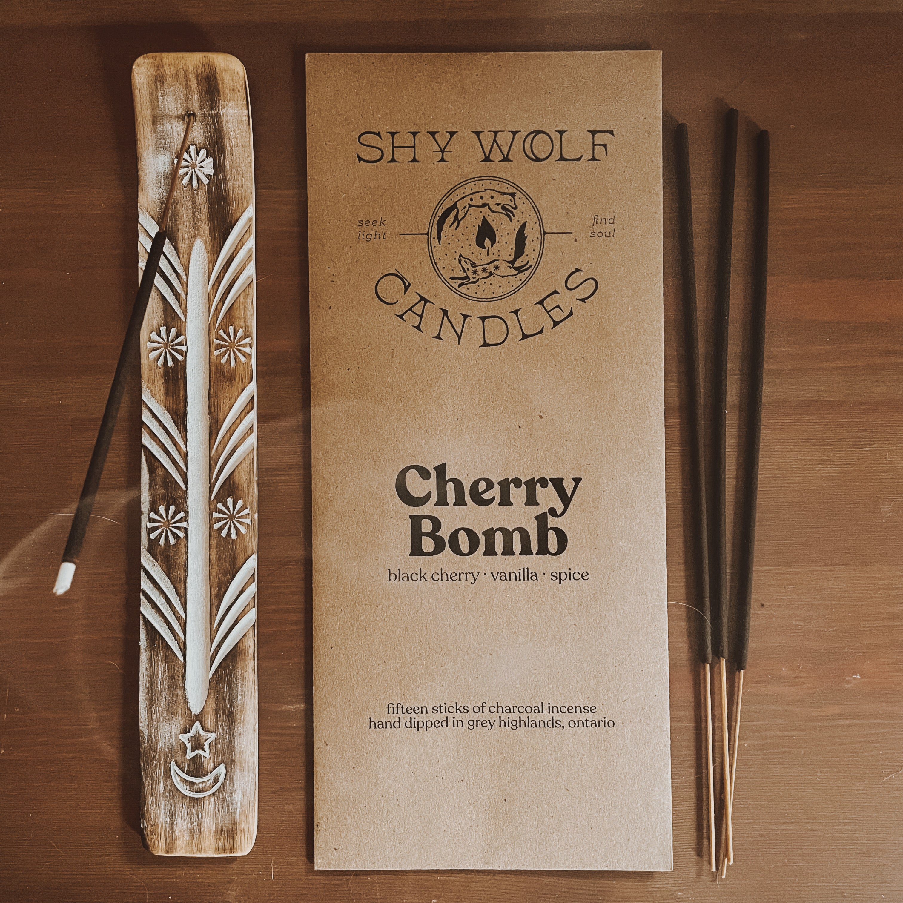 Made with the same fragrance as its candle counterpart, however due to the nature of incense, the scent will throw differently and have a more smoky note to it.