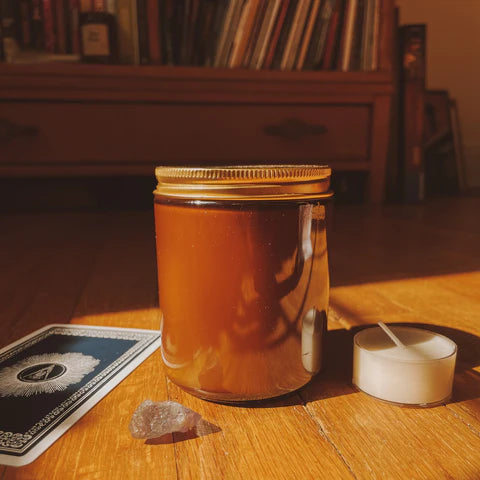 As well as an exclusive candle, you'll also receive a crystal, a tarot or oracle card from ever-rotating decks, a tealight sample and a love letter from us to you with journal prompts and manifestation rituals for the month ahead.